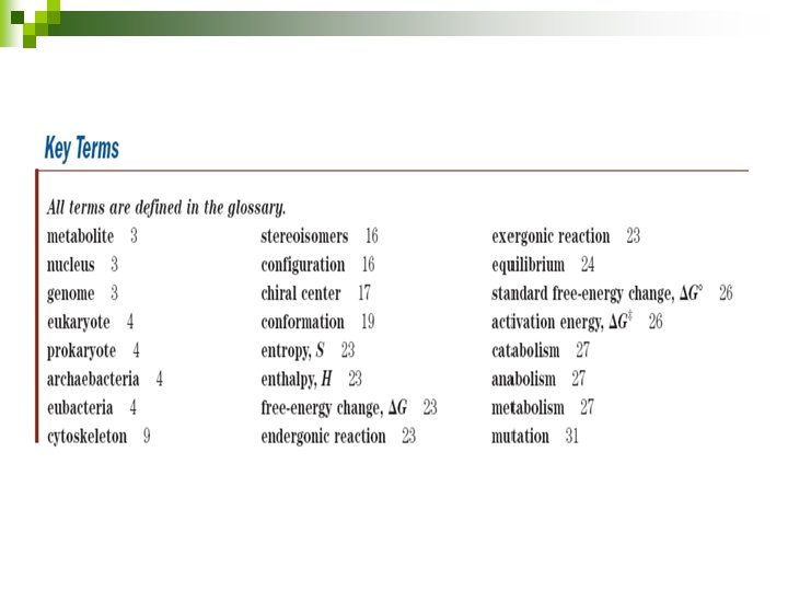 1. 3 Physical Foundations n n n n Living Organisms Exist in a Dynamic Steady State, Never at Equilibrium with Their Surroundings Organisms Transform Energy and Matter from Their Surroundings The Flow of Electrons Provides Energy for Organisms Creating and Maintaining Order Requires Work and Energy (S, G, H) Energy Coupling Links Reactions in Biology Keq and △G 0 Are Measures of a Reaction’s Tendency to Proceed Spontaneously Enzymes Promote Sequences of Chemical Reactions Metabolism Is Regulated to Achieve Balance and Economy