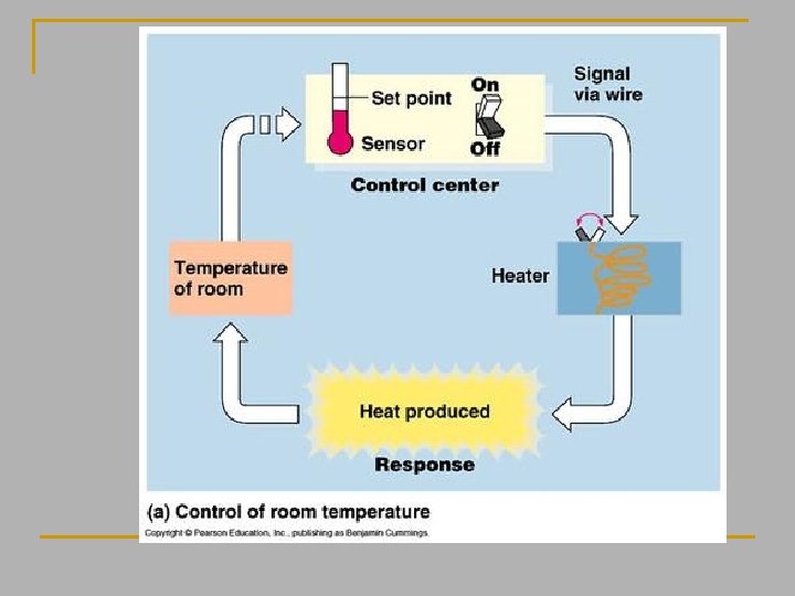 Maintaining Homeostasis • Control center • Determines set point • Analyzes information • Determines appropriate response • Effector • Provides a means for response to the stimulus Copyright © 2003 Pearson Education, Inc. publishing as Benjamin Cummings Slide 1. 19 b