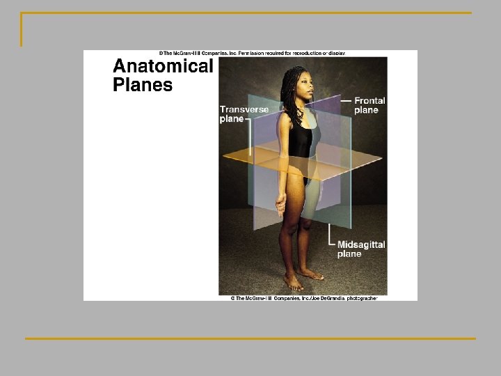 BODY PLANES & SECTIONS n n Section – a cut made thru the body wall or organ Plane – imaginary line
