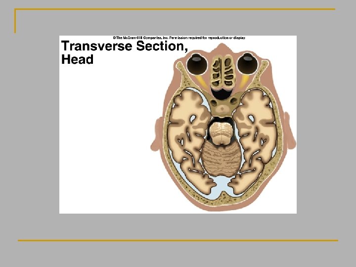 n TRANSVERSE (cross) SECTION: cut made along horizontal plane that divides body into superior & inferior parts