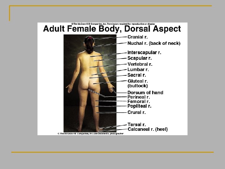REGIONAL TERMS n Visible landmarks on surface of body n Pg. 12 – Anterior & Posterior Landmarks