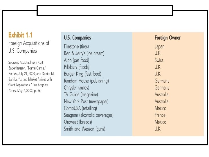 Internationalization of U. S. Business Increasing globalization of markets Many U. S. companies are now foreign controlled: Carnation (Swiss), Daimler-Chrysler (German) Firms face competition on all fronts U. S. firms seeking foreign markets to increase profits