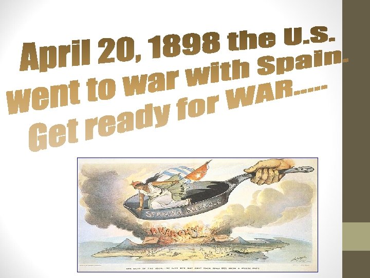 Why did the U. S. eventually get involved with events surrounding Cuba? #10 • • 1868 -1878 Cubans fought for their independence from Spain. Sugar was important investment for the U. S. 1. Treatment of cuban prisoners 2. De Lome Letter criticizing the U. S. President 3. Battleship U. S. S. Maine exploded (killed 260 Americans died) = blamed Spain for explosion…go to war? ? ? De Lome