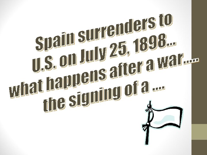 #14 What did Commodore George Dewey accomplish in the war in the Philippines? • May 1, 1898 American naval commander George Dewey sailed into the Philippines to destroy Spanish fleet. • 2 months later, Spanish surrendered to the U. S. (VICTORY)