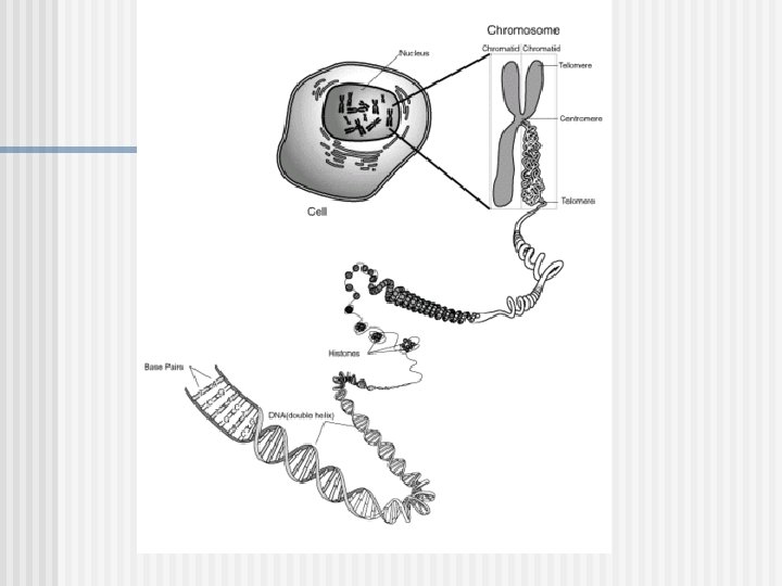 2. Chromosomes are made up of DNA, which carries the cells coded genetic information- and proteins. 3. The cells of every organism have a specific number of chromosomes.