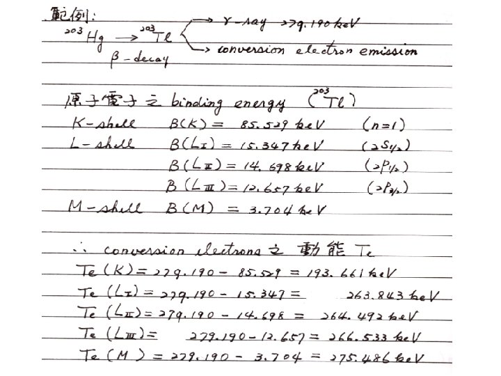 (4) The energy difference ΔE are typically of the order of Me. V, while the rest energies Mc 2 are of order A × 103 Me. V, where A is the mass number. Thus ΔE << Mc 2 and to a precision of the order of 10 -4 to 10 -5 we keep only the first three terms in the expansion of the square root: (5) The actual γ-ray energy is thus diminished somewhat from the maximum available decay energy ΔE. This recoil correction to the energy is generally negligible, amounting to a 10 -5 correction that is usually far smaller than the experimental uncertainty with which we can measure energies.