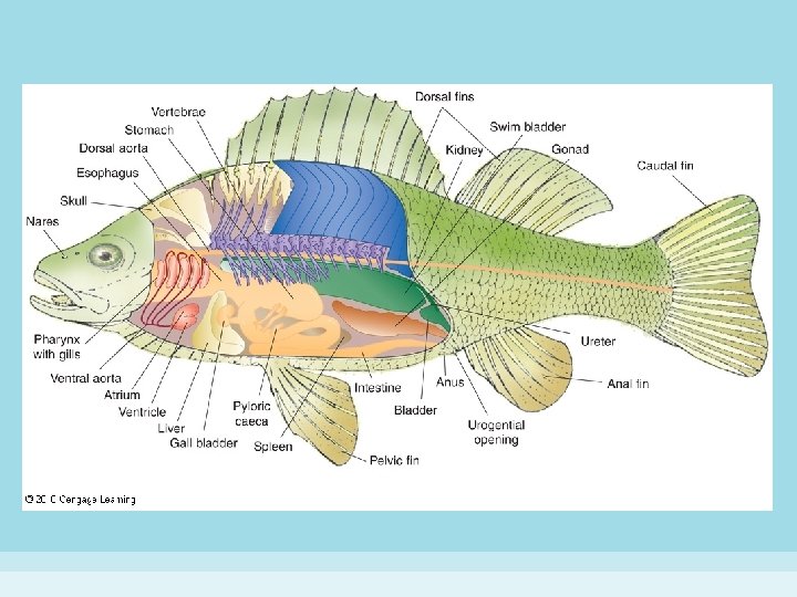 Dorsal fin Kidney Rectal Spine Stomach Testis Gill slits gland Spleen Caudal fin Mouth Clasper Heart Pharynx Pelvic Intestine Pancreas fin Liver Pectoral Cloaca fin Placoid scales Stepped Art Fig. 10 -3, p. 266