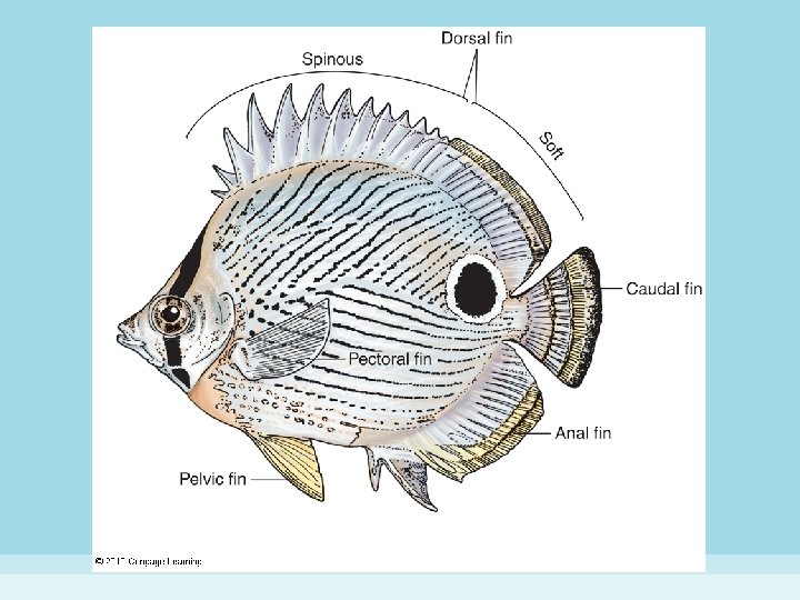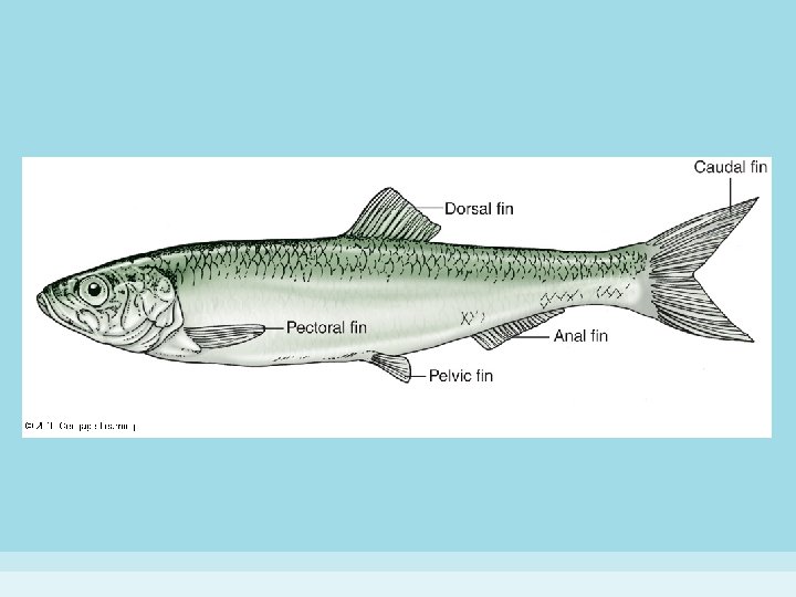 Ray-Finned Fishes • dorsal fins, caudal fin, and anal fin – help maintain stability while swimming • Paired fins consist of pectoral and pelvic fins – both used in steering – pectoral fins also help to stabilize the fish