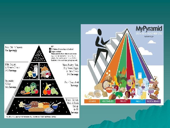 Making Smart Choices- choosing a variety of foods from all the 5 food groups My. Pyramid-an interactive guide to healthful eating and active living ~Focus on Fruits; Vary your veggies (go colors); Calcium rich (lower fat choices); Whole grains; Lean proteins (lean meats & poultry…add more beans, nuts, & seeds); Avoid ^fat, sugar, and sodium food…eat in moderation. http: //www. choosemyplate. gov/ 1.