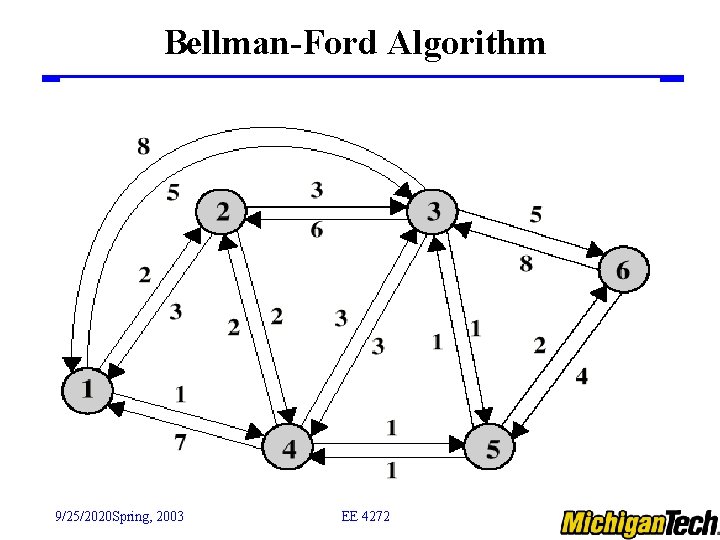 Bellman-Ford Algorithm 9/25/2020 Spring, 2003 EE 4272