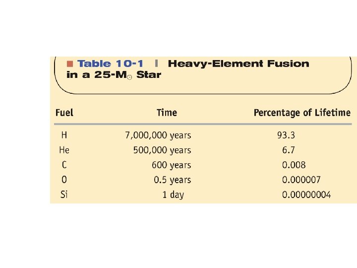 The Deaths of Massive Stars: Supernovae Final stages of fusion in high-mass stars (> 8 Msun), leading to the formation of an Iron core, happen extremely rapidly: Si burning lasts only for ~ 1 day Iron core ultimately collapses, triggering an explosion that destroys the star: A Supernova