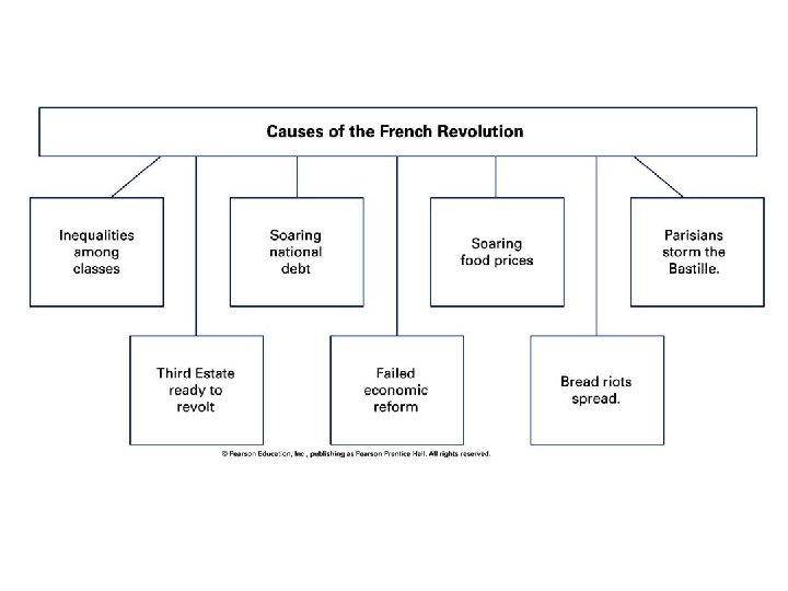 B. What causes revolution? IDEAS + DISCONTENT 1) Third estate in 1780’s: - resented the other estates - is struggling from poor harvest, high $$ ofbread - had been reading Enlightenment ideas - had heard of the Am Rev. - is overtaxed yet national treasury is depleted - is frustrated w/incompetent King Louis XVI and Queen “Madame Defecit” - began protesting, demanding liberty, equality, fraternity “Man is born free and everywhere he is in chains”