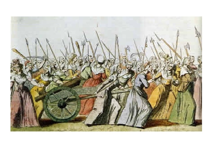 V. Women March to Versailles Palace A. Changes are slow in coming B. Queen Marie Antoinette 1. arranged marriage b/t Capet-Bourbon + Habsburg dynasties 2. Was seen by the women of Fr: - a foreigner - out of touch - extravagant C. Bread prices still high – women demand the monarchy live in Paris D. Rumor spreads that Marie says “Let them eat cake!” E. Oct 5, 1789 -- 12 mile march in rainstorm 1. 7, 000+ women would not leave Versailles until King and Queen move to Paris 2. Louis and Marie reluctantly agree