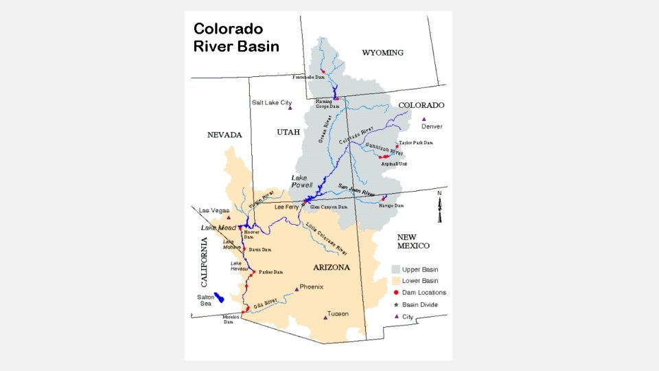 WATER MANAGEMENT PROJECTS • The Colorado River begins as a glacial stream in the Rocky Mountains and quickly grows larger as other streams feed into it. • So much of the river’s water is diverted that the river runs dry before it reaches the Gulf of California.