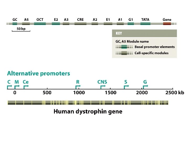 11. 3. 2 Control of transcription initiation in eukaryotes • The basal rate of transcription initiation in eukaryotes is very low. • Activators play a much prominent role than repressor proteins. • Eukaryotic promoters contain regulatory modules • Alternative promoter
