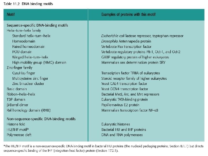 11. 1. 1 The special features of DNAbinding proteins • X-ray crystallography • nuclear magnetic resonance (NMR) spectroscopy • A limited number of motifs