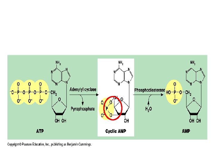 c. AMP �A form of AMP made directly from ATP by Adenylyl cyclase (enzyme) �Short lived - converted back to AMP (by Phosphodiesterase) �Activates a number of Protein Kinases which then phosphorylates various other proteins