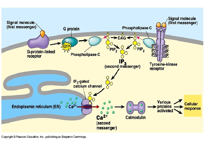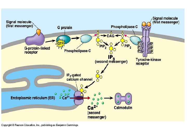 Inositol Trisphosphate (IP 3) �Secondary messenger attached to phospholipids of cell membrane. �Sent to Ca channel on the ER. �Allows flood of Ca 2+ into the cytoplasm from the ER, which activate the next protein in one or more signaling pathways � (video animation from Campbell)11_13 Signal. Transduction_A. swf