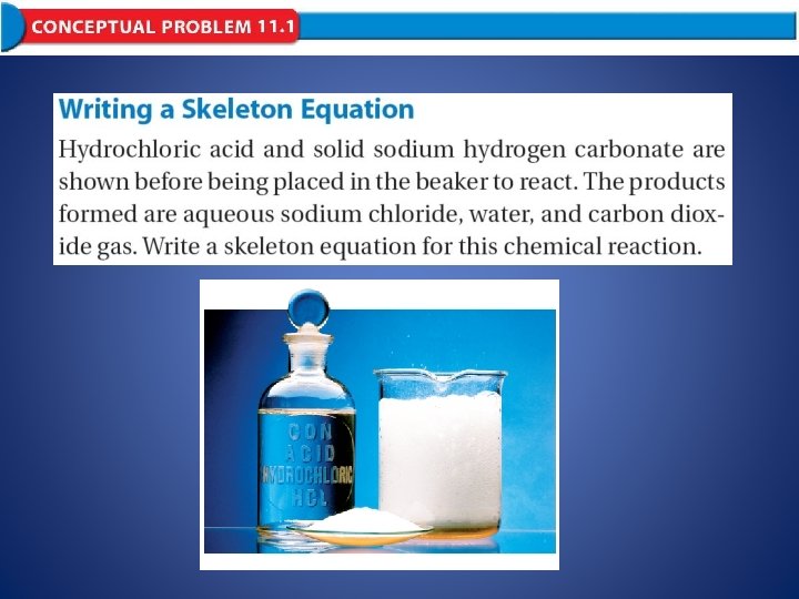 11. 1 Balancing Chemical Equations – To write a balanced chemical equation, first write the skeleton equation. Then use coefficients to balance the equation so that it obeys the law of conservation of mass.