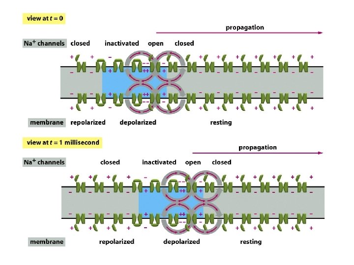 Propagation of an action potential along an axon without attenuation Action potentials are the direct consequence of the properties of voltage-gated cation channels