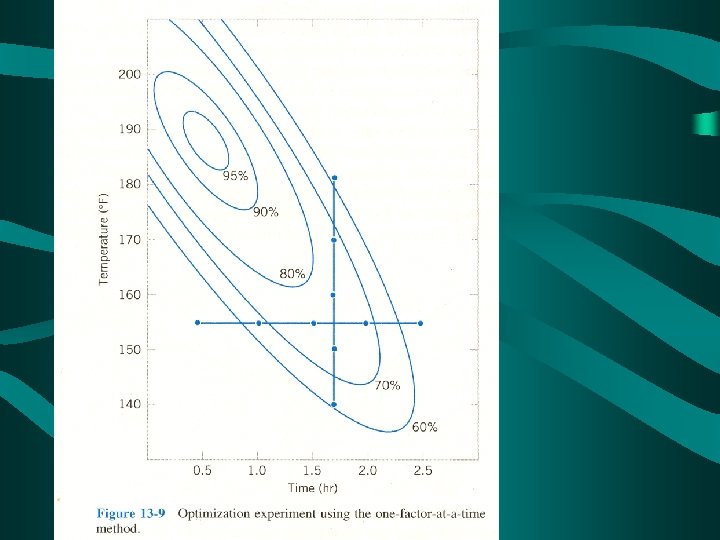 Example: ANOVA 2 -Factor (equal K) with Interaction A study is conducted to investigate the effect of temperature and humidity on the force required to separate an adhesive product from a plastic laminate. The experimenter is interested in (4) temperature levels and (2) humidity levels. Three measurements are taken at each of the IJ treatment combinations. Are there real differences in the average responses for these levels of factors at a level of significance of. 05? Conduct this analysis under the assumption that the test for interaction found a significant interaction (difference in response) between levels of temperature and levels of humidity. The summary data of the experiment follows: T 11 = 119 T 21 = 108 T 31 = 95 T 41 = 85 (lbs) T 12 = 99 T 22 = 83 T 32 = 73 T 42 = 60 (lbs) x 2 IJK = 22, 722