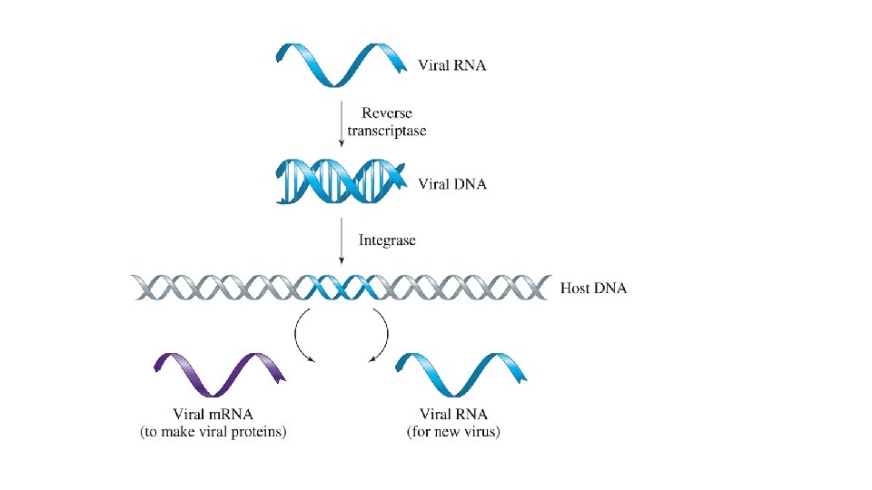 Reverse Transcription In reverse transcription, • a retrovirus, which contains viral RNA but no viral DNA, enters a cell • the viral RNA uses reverse transcriptase to produce a viral DNA strand • the viral DNA strand forms a complementary DNA strand • the new DNA uses the nucleotides and enzymes in the host cell to synthesize new virus particles 54