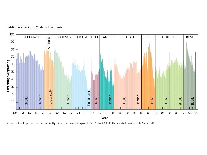The President As Party Chief and Super Politician • As the roles of the president have evolved the institution of the presidency has gained considerable power and responsibility. In the twentieth century presidents have been expected to take an active role in setting an agenda for both domestic and foreign policy. In order to gain the enactment of the specific proposals the president has had to rely on his role as the leader of his political party and his ability to mobilize public support for his agenda. If the president is of the same party that has control of both houses of Congress it is easier for him to work with Congress on his legislative agenda. When the opposition party controls Congress, the president has a more difficult task in gaining the enactment of his proposals. How much success the president has is, in part, influenced by the public support for the president as measured in public opinion polls. When the president presents an idea to Congress, he may “go public” in an attempt to generate support for his proposal. He is also likely to rely on specific constituencies to contact Congress requesting the enactment of the policy. If the president is not successful in persuading Congress to enact his agenda he will have a difficult task in seeking reelection, or if he is in his second term of office he will have a difficult time in accomplishing his overall goals.