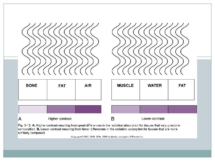 Types of Body Tissues �Three types of body tissues may be distinguished from each other on a radiograph primarily because of the effect of tissue density: � Soft tissue (muscles, glands) � Gas (air in the lungs or bowel) � Fat (adipose tissue)