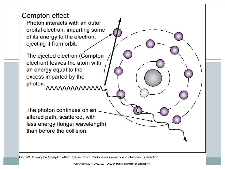 Scattering/ Compton Effect �The Compton photon may be scattered in any direction. �Scatter refers to any x-ray photon which has changed direction from the direction of the primary beam. �The Compton Effect may be considered as scatter, since 99% of all scattered x-ray photons originate from Compton interactions in the patient.