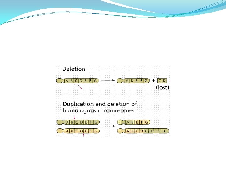 B. Chromosomal Mutations - involve changes in the number or structure of chromosomes Types: 1. deletion - the loss of all or part of a chromosome 2. duplication - a segment of chromosome is repeated; the opposite of deletion