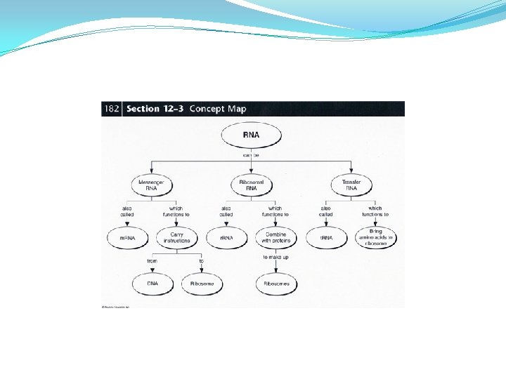 B. Types of RNA DNA 1. messenger RNA (m. RNA) - RNA molecules that carry copies of instructions from 2. ribosomal RNA (r. RNA) - the major part of a ribosome - proteins are assembled on ribosomes which are made up of several proteins and r. RNA 3. transfer RNA (t. RNA) - transfers each amino acid to the ribosome as specified by coded messages in the m. RNA
