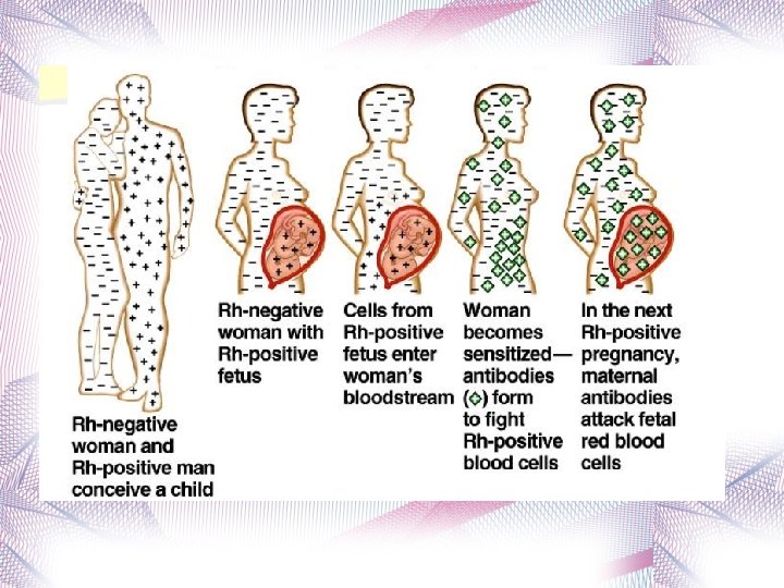 Rh SYSTEM Rh factor is protein that is either present or not in blood Also called D antigen Rh + = Blood has Rh factor Rh – = Blood does not have Rh factor Majority of population is Rh+