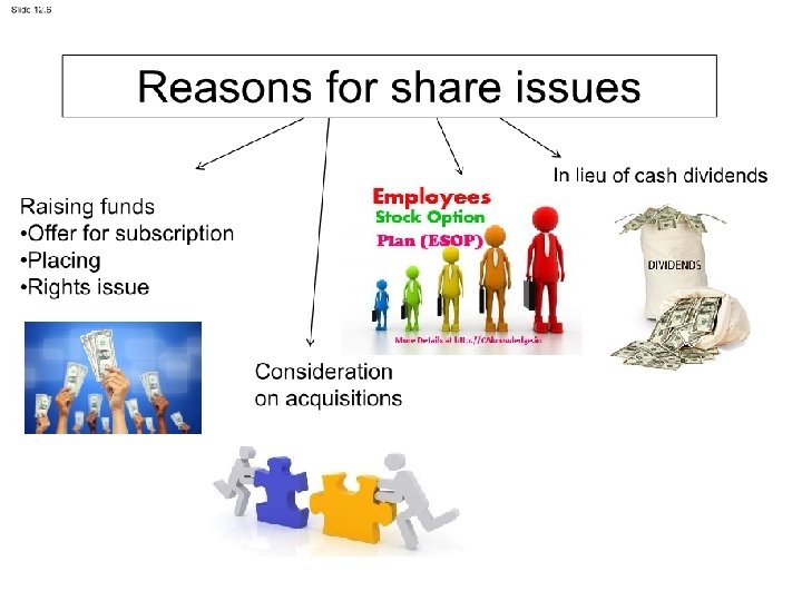 Accounting for share issues • Allotment (or issue) • The directors approve and authorise the issue of shares • trust account funds transferred to the company’s general funds.