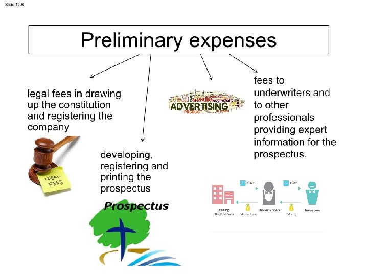 Preliminary expenses • Preliminary expenses should be written off in the Income Statement in the year in which they are incurred. • The journal entries would be: • Preliminary expenses $XXX • Accounts payable $XXX • Being artwork for prospectus • Accounts payable • Bank • Being payment of creditors $XXX