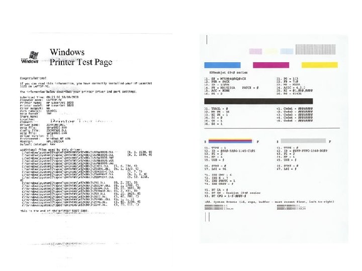 Printer Languages • Communication methods between OS and printer • Printer uses Post. Script commands to build the page • Printer uses PCL commands to build the page • PCL: Printer Control Language • Windows GDI builds page, then sends it to the printer • GDI: Graphics Device Interface • Windows 7/Vista uses XML Paper Specification (XPS) to build the page, then sends it to the printer • XPS (XML Paper Specification) • Raw data printed with little-to-no formatting