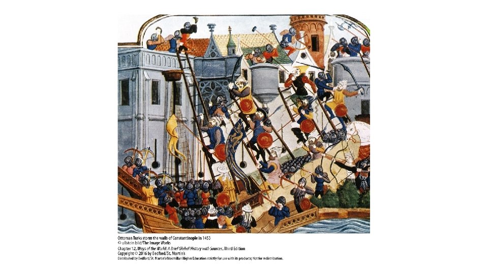 III. Civilizations of the Fifteenth Century: The Islamic World A. In the Islamic Heartland: The Ottoman and Safavid Empires 1. Ottoman size, strength, and longevity a. The Ottoman Empire is one of the great empires in world history. Its scale, power, and age, as well as its cultural achievements, place it in the same category as China. 2. 1453: Turkish threat to Europe a. While the Crusades marked a period where Christendom was on the offensive against Islam, the Turks built a massive military that ended the Byzantine Empire in 1453 with the taking of Constantinople, making them the heirs to Rome. The Ottoman Turks would then lead a series of military campaigns into Europe, laying siege to Vienna in 1529.