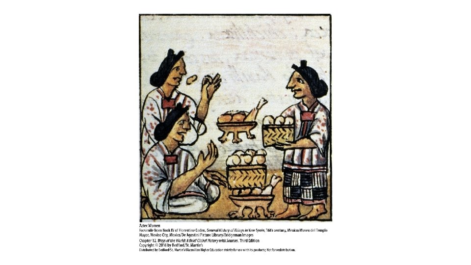 IV. Civilizations of the Fifteenth Century: The Americas 3. Conquest state and market centers a. The Aztec Empire was a conquest-based state that required tribute from its conquered subjects. Tribute came in the form of goods for the markets, elite luxury items, and human slaves. 4. Tlacaelel (1398 -1480) and ideology of human sacrifice a. Human sacrifice was common in Mesoamerican history, but the Aztecs took it to a new level. The prominent official Tlacaelel promoted the idea that the god Huitzilopochtli needed human blood to rebuild his strength for his constant struggle with the forces of darkness. Massive ritual sacrifices also performed a political function and impressed the enemies of the Aztecs.