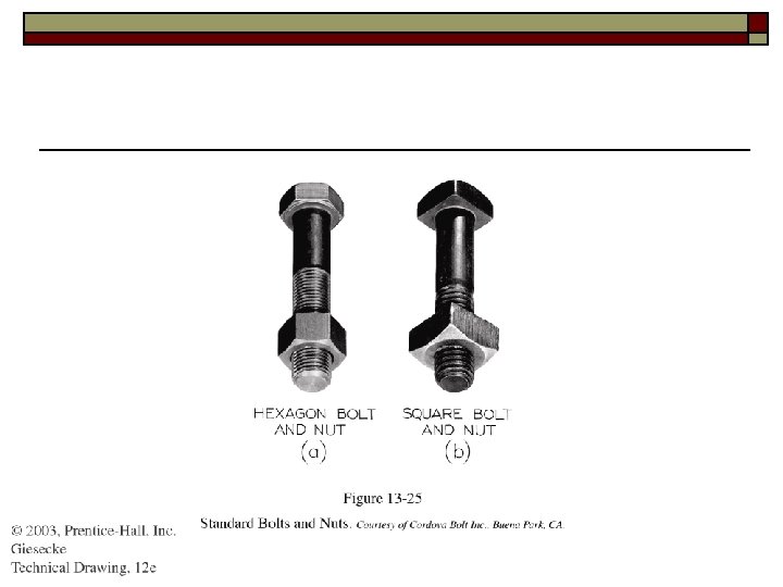 13. 27: Specification for Bolts and Nuts o o . 75 -10 UNC-2 A x 2. 50 HEXAGON CAP SCREW M 8 X 1. 25 -40 HEX CAP SCR 5/8 -11 UNC-2 B SQURE NUT M 8 X 1. 25 HEX NUT