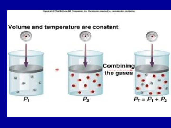 Dalton’s Law n Dalton’s Law of Partial Pressure states that the sum of the partial pressures of all of the components in a gas mixture is equal to the total pressure of the gas mixture. n PT = Pa + Pb + Pc ….