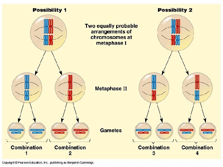 D. Outcome of Sexual Reproduction Genetic Variation Among Offspring that occurs in three ways. 1. Independent assortment - Positioning of homologous chromosomes occurs by chance Figure 13. 10 (p. 248) – The results of alternative arrangements of two homologous chromosome pairs on the metaphase plate in meiosis I.