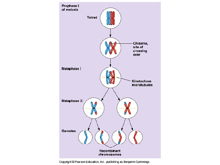 2. Crossing over - Results in the production of recombinant chromosomes. Recombinant chromosomes form when DNA from two parents occurs on the same chromosome. This occurs during cross-over. - Figure 13. 11 (p. 249) – The results of crossing over during meiosis.