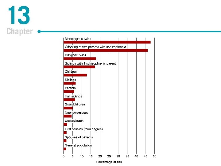 Causes of Schizophrenia: Findings From Genetic Research Family studies § Inherit a tendency for schizophrenia, not specific forms of schizophrenia § Risk increases with genetic relatedness E. g. , having a twin with schizophrenia incurs greater risk than having an uncle with schizophrenia