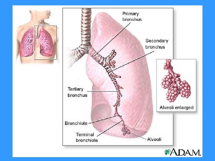 Bronchial (Respiratory) Tree Divisions • All but the smallest of these passageways have reinforcing cartilage in their walls • Largest to smallest: – Primary bronchi – Secondary bronchi – Tertiary bronchi – Bronchioles – Terminal bronchioles