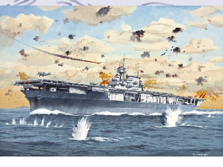 June 4, 1942, Yorktown is hit Heavy antiaircraft fire has brought down at least one Japanese plane. on the port side, amidships, by a Japanese Type 91 aerial torpedo during the midafternoon attack by planes from the carrier Hiryu at the Battle of Midway.