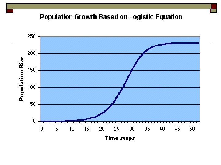 o Logistic Growth Curve-growth limited by density-dependent factors, S shaped graph