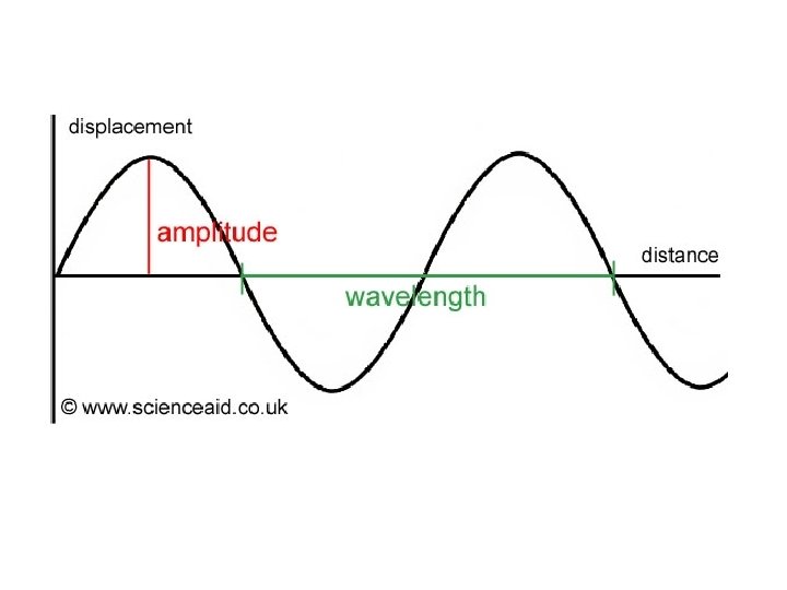 • Amplitude – distance from midpoint to crest or trough of the wave • Wavelength – distance from one crest to the next one • Frequency – how often a wave occurs
