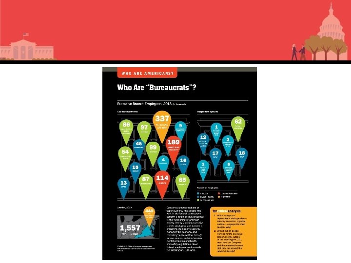Bureaucracy and Bureaucrats: Reform • On July 2, 1881, President Garfield was assassinated by a man who was upset that he was not given a patronage position. • Pendleton Civil Service Reform Act, 1883 – Covered positions must be obtained by passing an exam. – Civil servants cannot be fired without cause.