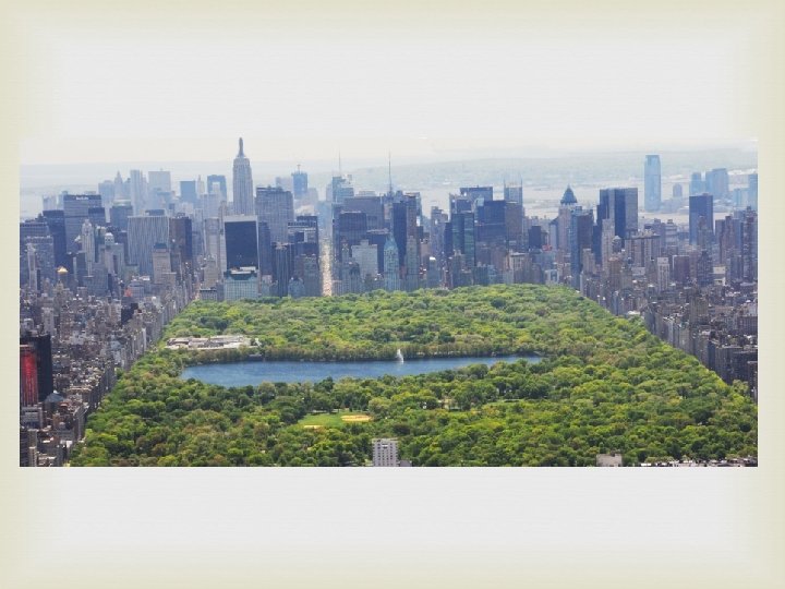Urban Planning - Open Space Open space - land within urban areas that is set aside for scenic and recreational enjoyment. Parks, public gardens, bicycle and hiking trails. Greenbelts - open spaces left in their natural condition. Many benefits Absorb CO 2, Produce O 2, remove pollutants from the air, keep the city cooler, absorb rainwater, exercise and relaxation for urban residents.