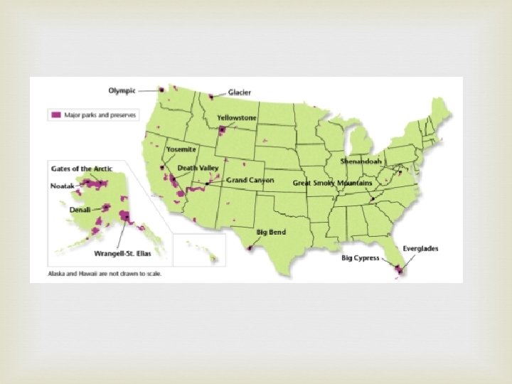 Parks and Preserves Benefits and Threats Benefits Protects species Protects habitats Recreation and education for people Threats Litter and traffic jams Climate change Rangelands, mining, logging, oil and gas drilling, power plants are close enough to affect the parks.