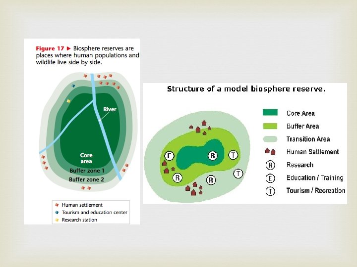 Parks and Preserves United Nation's Man and the Biosphere Program 1976 Established several hundred preserves throughout the world. Humans and wildlife are included in the plan and live side by side. Called biosphere reserves